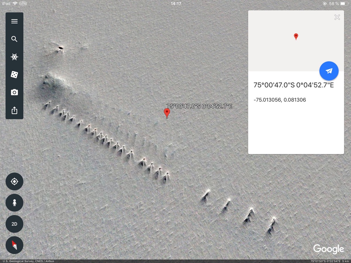 Coordonnées de la base inconnue : 75° 0’46.98″S 0° 4’52.71″E