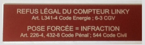 Les personnes opposées au LINKY dans mon immeuble étaient en minorité, nous avons tout de même envoyé des lettres de refus et collé des affiches sur les compteurs “Touche pas à mon compteur”, et ça n’a pas empêché les agents Enedis de poser les compteurs Linky derrière notre dos et… Lire la suite »