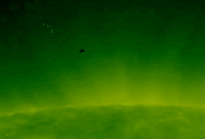 Énorme vaisseau spatial filmé par Soho autour du soleil. Sa taille approximative est environ égale a celle de la lune, comment sait on qu’il s’agit d’un vaisseau ? Tout simplement parce qu’il a été filmé en train de faire des manœuvres que seul un objet contrôlé intelligemment peut faire.