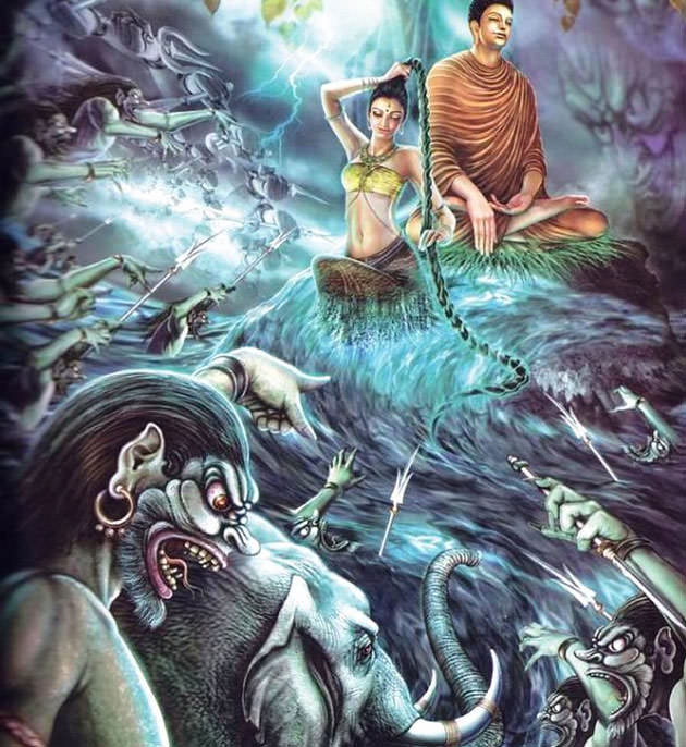 Ceci est un point mis en évidence par Shundo Tachibana, qui, après avoir expliqué que Mara est la personnification du mal, ainsi que nous l’avons déjà vu, souligne que la vie entière du Bouddha “fut une vie de lutte constante contre ce mal”, comme le fut aussi la vie de tous ses disciples. Mara et ses adeptes, continue Tachibana, sont comparés dans les textes bouddhistes à une armée, dont le général est précisément “le Tentateur” en tant que mal primordial ou racine de tous les maux. L’orientation guerrière de la discipline et  l’ethos  bouddhiste ont été mis en lumière par Julius Evola dans son étude désormais classique sur “la Voie de l’éveil”. Evola attire l’attention sur la fréquence avec laquelle apparaissent l’assimilation à la guerre de l’ascèse bouddhiste, et celle de la qualité de l’ascète aux vertus du guerrier et du héros ” dans les textes canoniques.