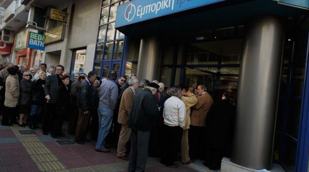Les caisses étant déjà vides (avec en plus des dettes à rembourser d’urgence …) , c’est la ruée des déposants grecs pour retirer leur argent (bank run, ou panique bancaire ) .