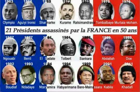 Source : https://www.coupsfrancs.com/le-hit-parade-des-22-presidents-africains-assassines-par-la-france/?fbclid=IwAR1jozWEyuX47eRmI2e7b_OrtK5UjDiolYSVXcV_IIW0AQXqDK1qfLokNvk