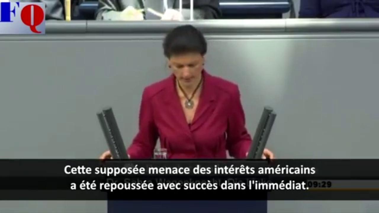 Sahra Wagenknecht ferras une courte carrière politique , car cela coute cher d’afficher son opinion même si elle a raison . Faut beaucoup de courage pour faire un discours pareille et l’autre pro usa en rigole .