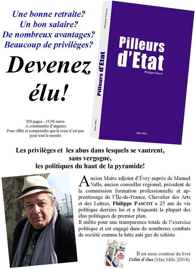 Sans parti pris, l’auteur rend compte de ce pillage d’État et du système qui le permet.Adjoint au maire d’Évry Manuel Valls, ancien conseiller régional, chevalier des Arts et des Lettres, Philippe Pascot milite pour une réelle transparence de l’exercice politique.
