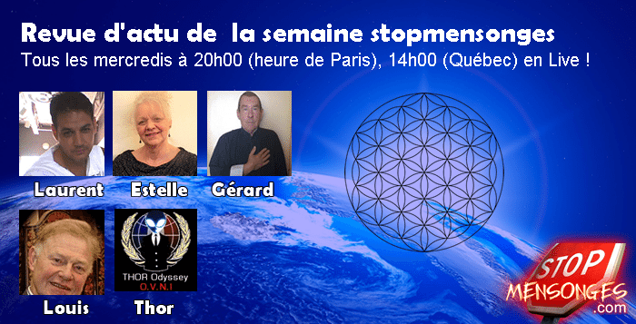 Retrouvez toute l’équipe de stopmensonges en LIVE tous les mercredis soir à 20h00 (heure de France) et 14h00 heure du Québec !!!
