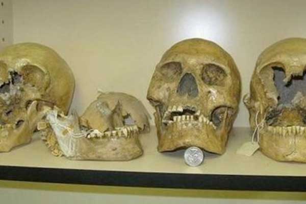 Les crânes mesuraient de 56 à 61 cm de la base jusqu’au sommet. Le crâne d’un adulte mesurant normalement environ 20 cm d’arrière en avant, un crâne aussi grand impliquerait une taille immense pour un humain normalement proportionné. De plus, tous les crânes avaient été trépanés avec précision (procédé de découpe d’un trou dans la partie supérieure du crâne).