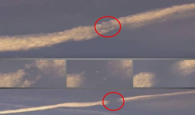C est plutot un point de concentration d onde electromagnetique qui ionise l air et rechauffe le nuage de condensation de christaux d eau degage par l avion. Ce doigt etre dans une zone de centre d essais militaire ?